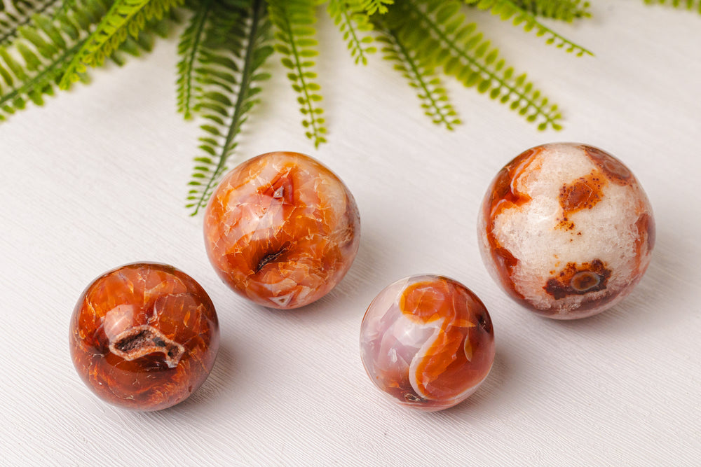 Breng levenskracht en warmte in je ruimte met onze Carneool bollen – prachtig gepolijste stenen in vurige tinten van oranje tot roodbruin. De bolvorm zorgt voor een harmonieuze en gelijkmatige verspreiding van energie, terwijl de krachtige uitstraling van carneool zorgt voor motivatie, creativiteit en vitaliteit.