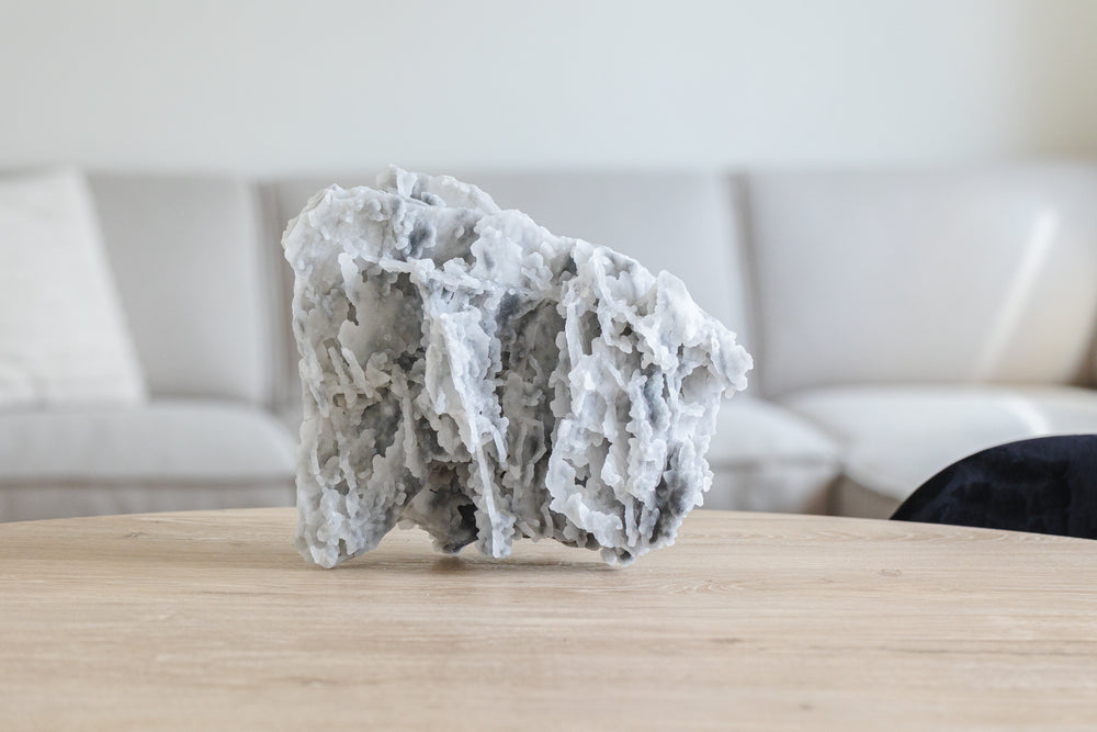 Sommige stukken spreken tot de verbeelding – en deze chalcedoon is daar een prachtig voorbeeld van. Dit unieke exemplaar staat stevig op zichzelf en heeft iets magisch: kijk goed, en je ziet een olifant gevormd in het gesteente. Een zeldzaam natuurwonder dat moeiteloos kracht en zachtheid uitstraalt.