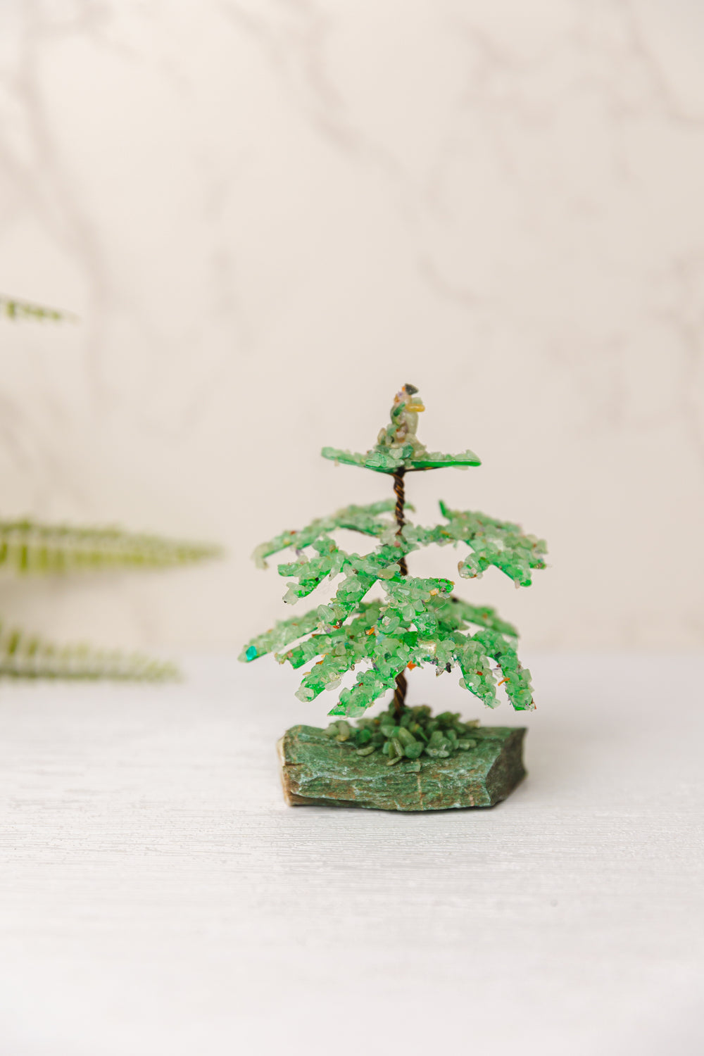 Breng kleur, energie en harmonie in je ruimte met dit prachtige edelsteen boompje. De stam en takken zijn kunstig gevormd van metaaldraad en versierd met kleine edelsteenchips, waardoor elk boompje een uniek handgemaakt kunstwerkje is.