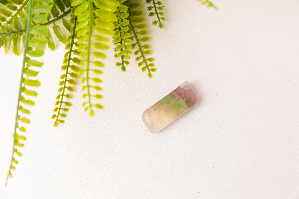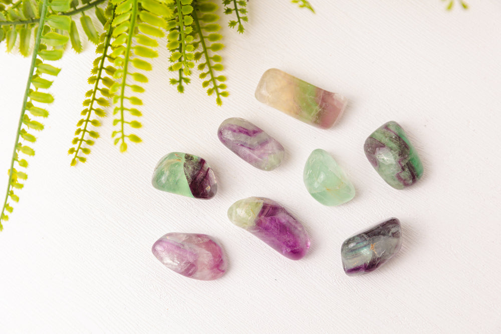 Deze prachtige fluoriet trommelstenen tonen een betoverend kleurenspel van groen, paars, blauw en soms transparante lagen. Elke steen is uniek in tekening en kleurverloop, waardoor ze stuk voor stuk kleine kunstwerkjes van de natuur zijn.