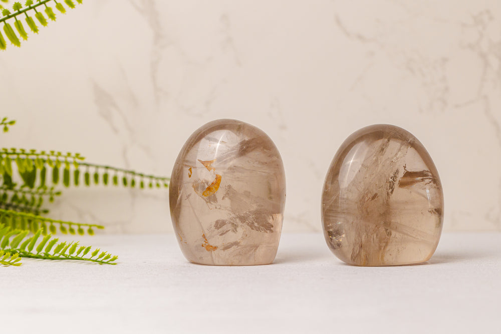 Deze krachtige Rookkwarts sculpturen stralen een diepe, kalme energie uit. Rookkwarts is een van de meest effectieve stenen voor aarding en energetische bescherming. In sculptuurvorm krijgt de steen nog meer aanwezigheid – perfect als krachtobject voor in je huis, praktijk of meditatiehoek.
