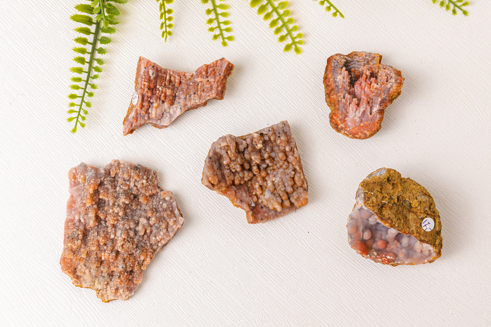 Met zijn zachte, zijdeachtige glans en subtiele roze tint straalt deze chalcedoon rust, tederheid en verfijning uit. Elke steen is een natuurlijk kunstwerk, gevormd in de diepe lagen van de aarde en slechts op zeer beperkte schaal gevonden in deze beroemde regio.