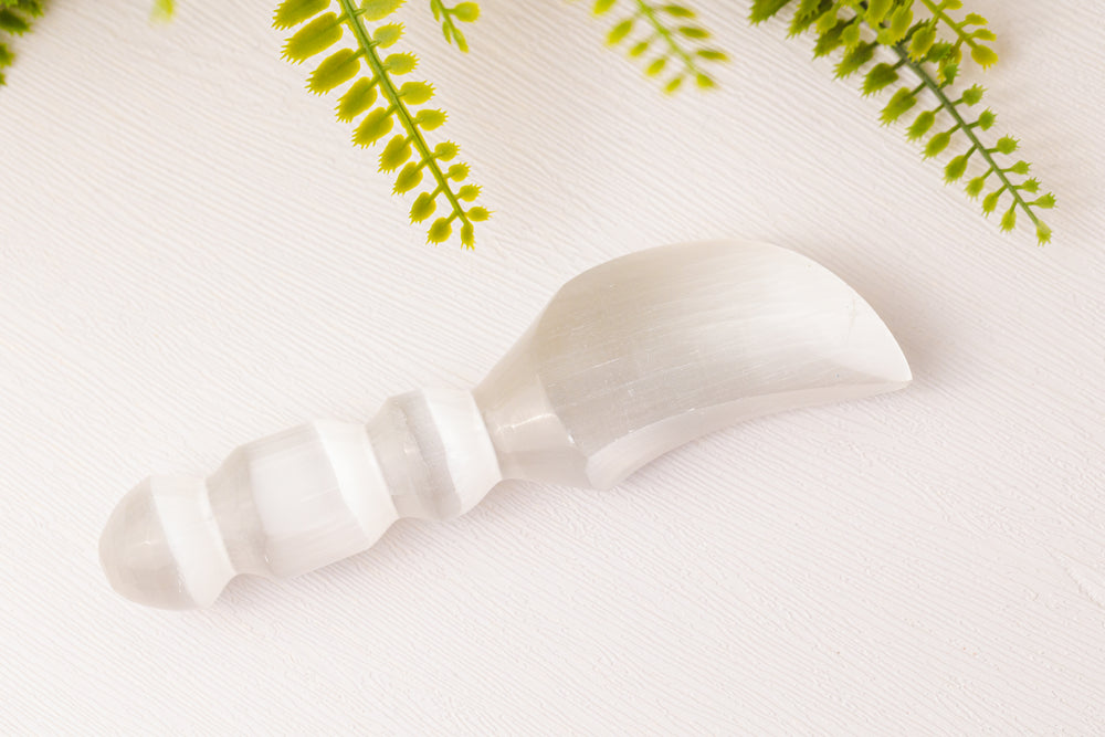 Deze prachtige witte dolk is ideaal voor rituelen, meditatie en energetische reiniging. Gebruik hem om aura’s en ruimtes te zuiveren, blokkades los te laten en de stroom van positieve energie te bevorderen. Seleniet staat erom bekend dat het andere kristallen reinigt en laadt, waardoor deze dolk een waardevolle toevoeging is aan je spirituele collectie.