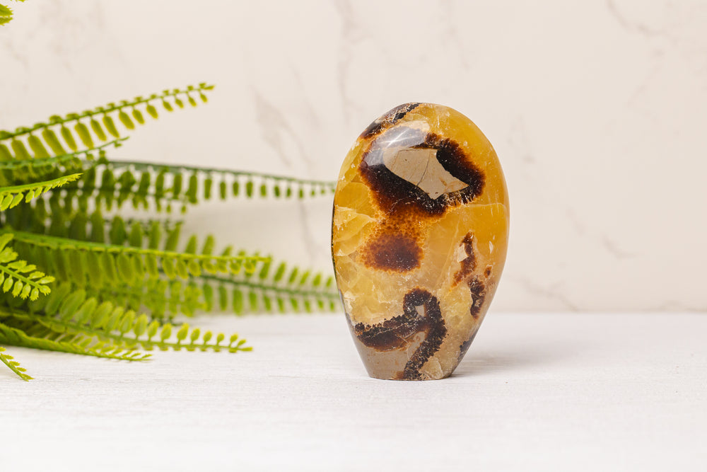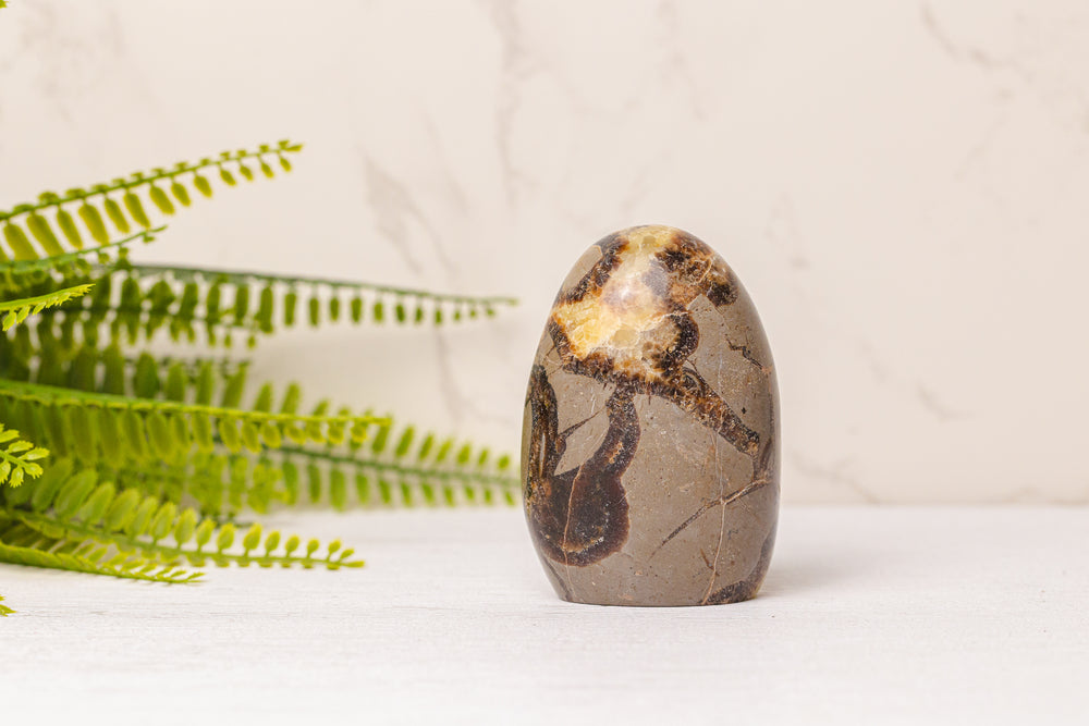 Voel de oeroude kracht van de aarde met onze Septarie sculpturen – fascinerende stenen met een uniek patroon van gele calciet, bruine aragoniet en grijze kalksteen. Elke sculptuur is een natuurlijk kunstwerk, miljoenen jaren oud, en straalt een aardende en beschermende energie uit.