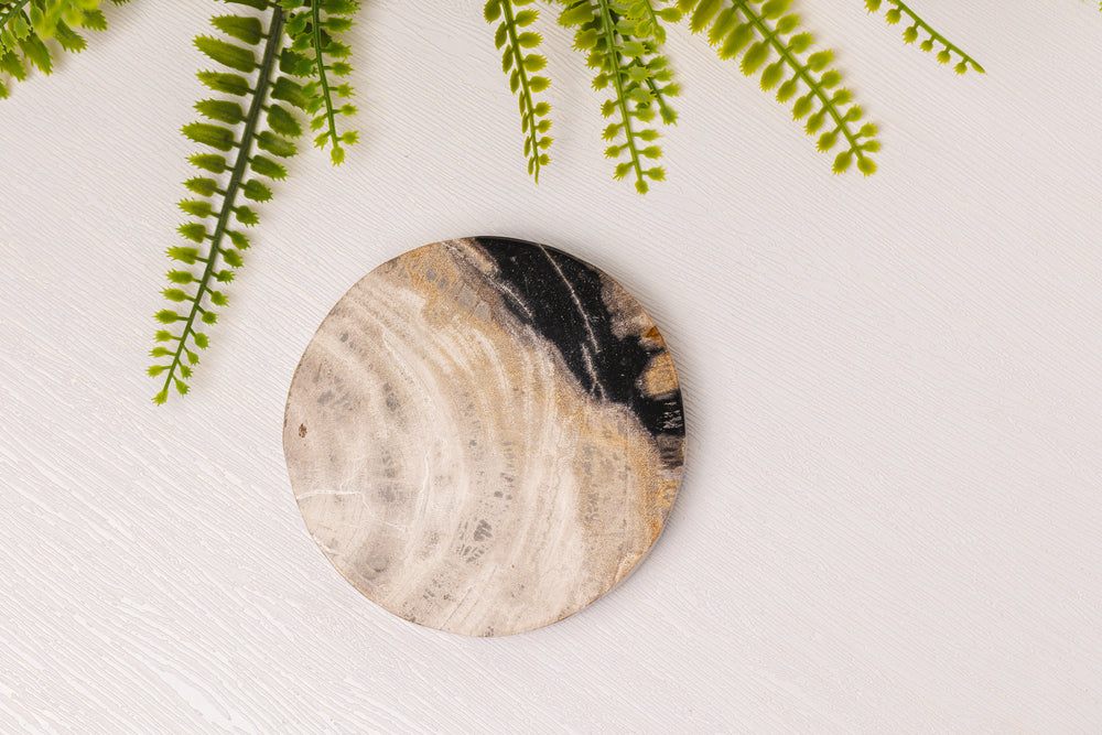 Breng de kracht van de natuur in huis met deze prachtige onderzetter van versteend hout. Elk stuk is miljoenen jaren oud en gevormd door een natuurlijk proces waarbij hout langzaam versteende en veranderde in kwarts – zonder zijn houtstructuur te verliezen. Het resultaat? Een robuuste, elegante onderzetter met een aardse uitstraling en een uniek patroon dat nergens anders te vinden is.