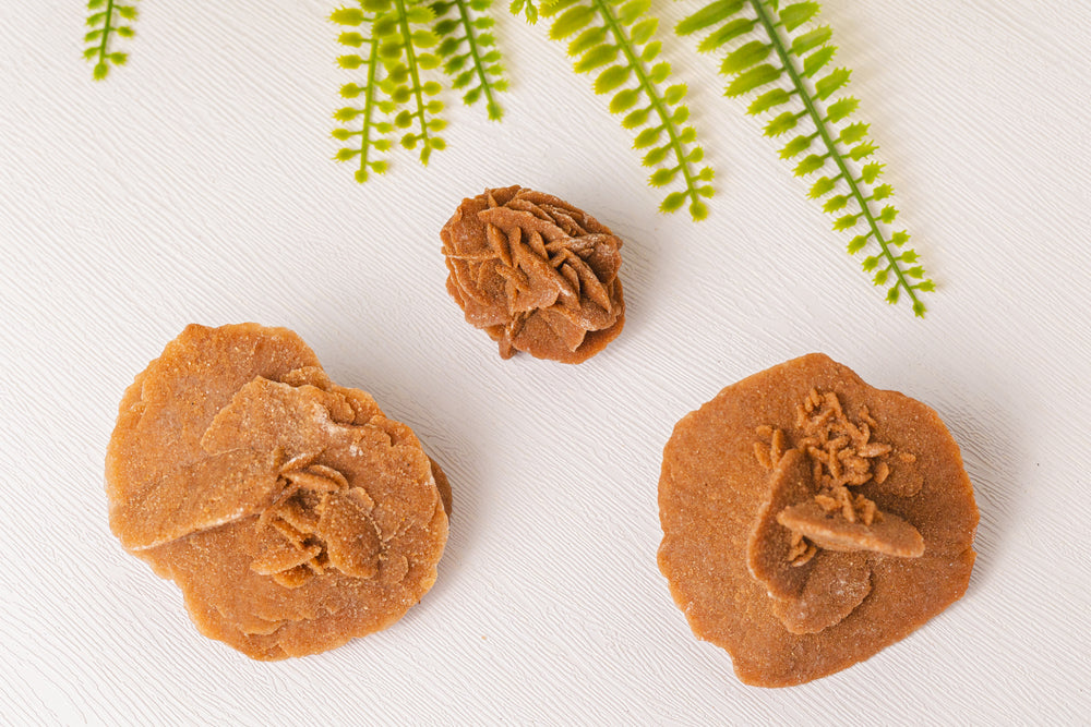 Deze woestijnroos bestaat uit kristallen van gips of baryt, vermengd met fijn woestijnzand, wat zorgt voor zijn karakteristieke uiterlijk.