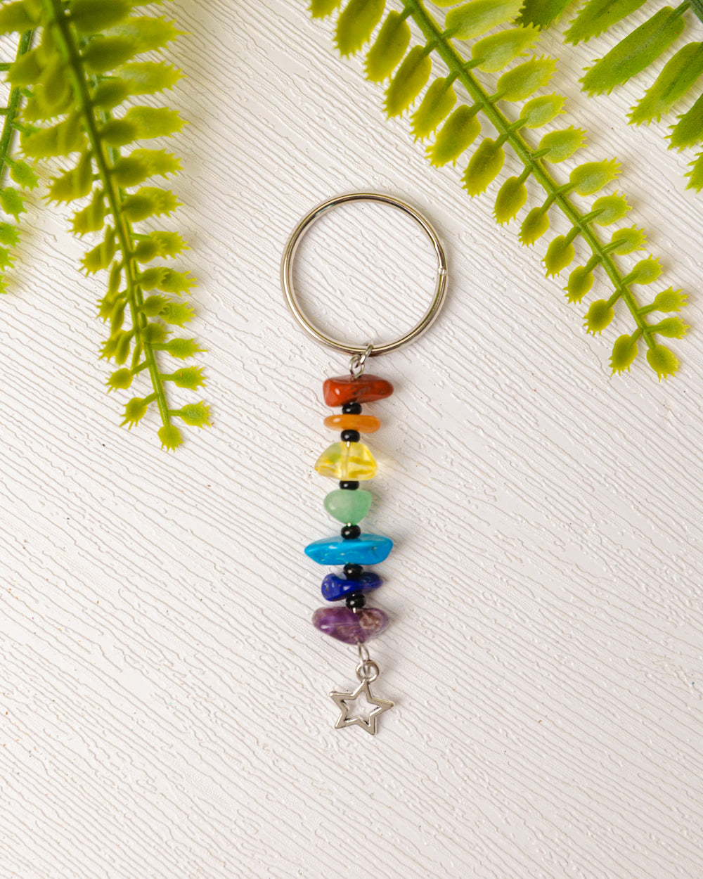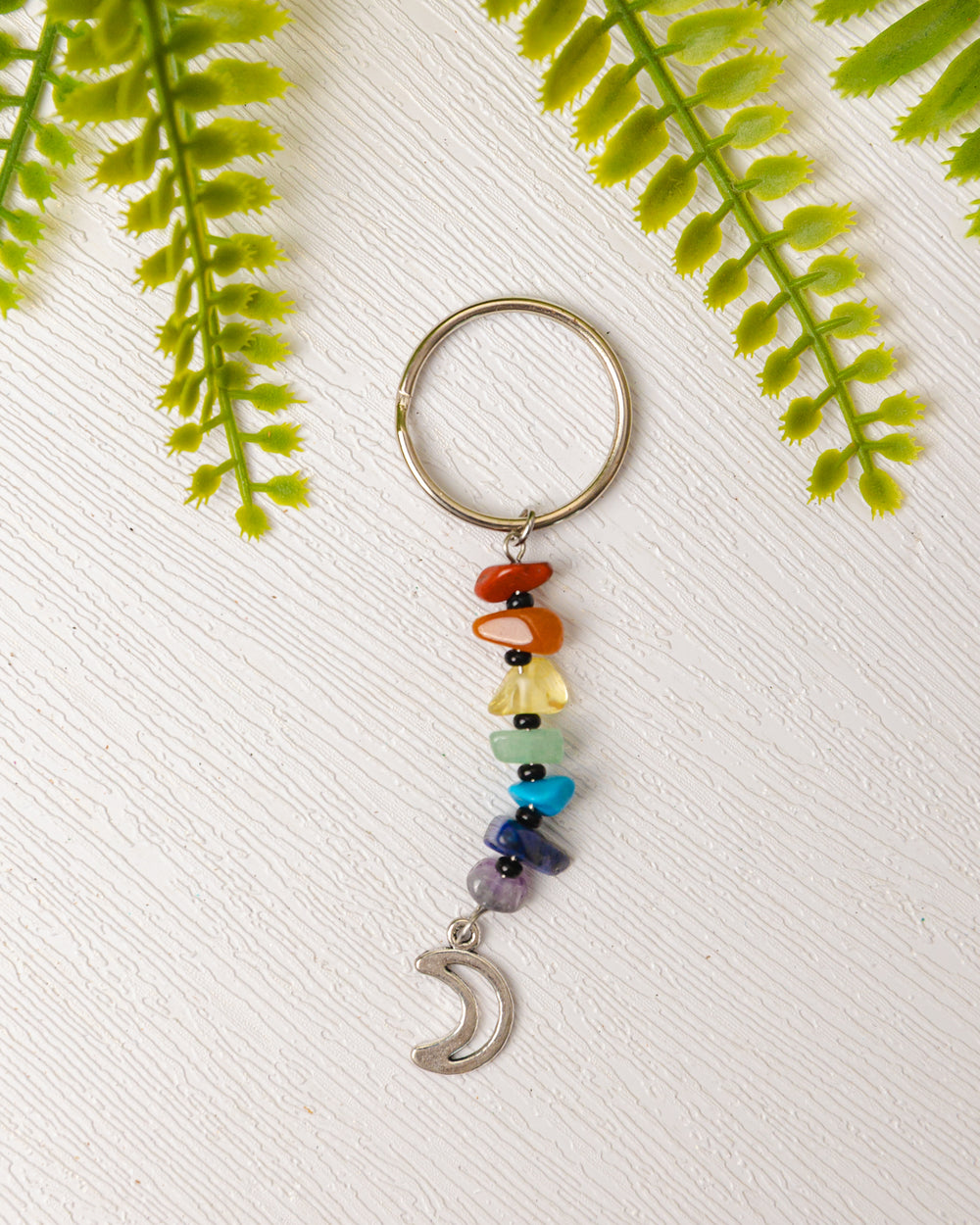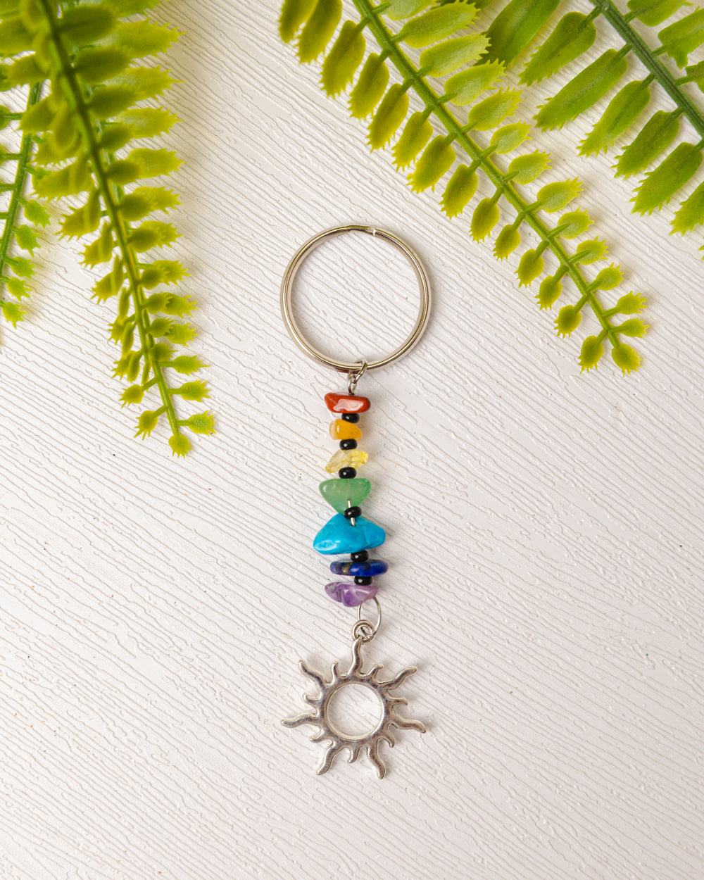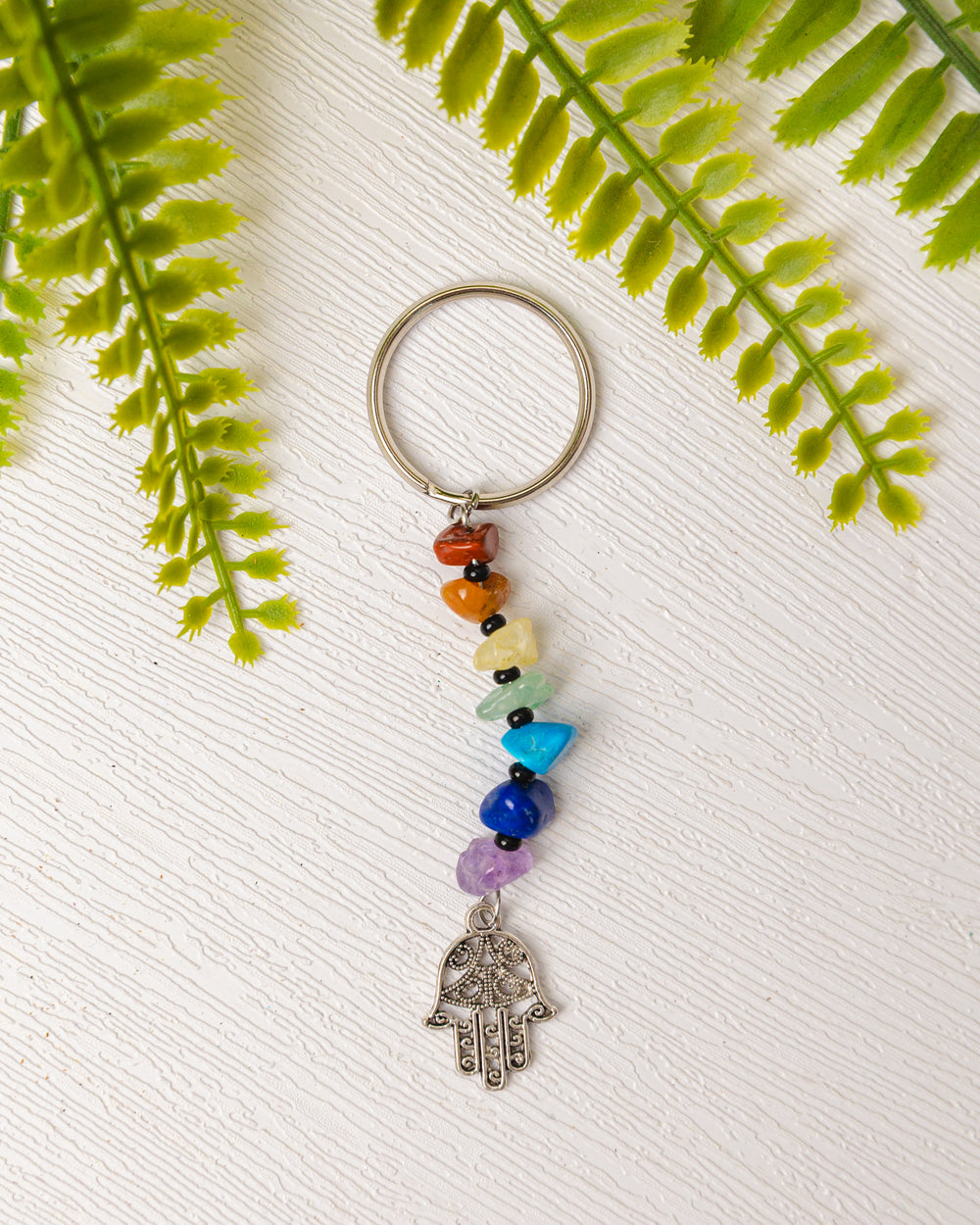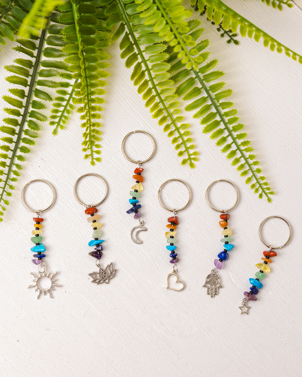Draag de energie van balans en bescherming altijd met je mee met deze prachtige zilverkleurige chakra sleutelhangers. Elke sleutelhanger is versierd met zeven edelsteentjes die de chakra’s vertegenwoordigen en een symbolisch bedeltje dat jouw energie extra kracht geeft.