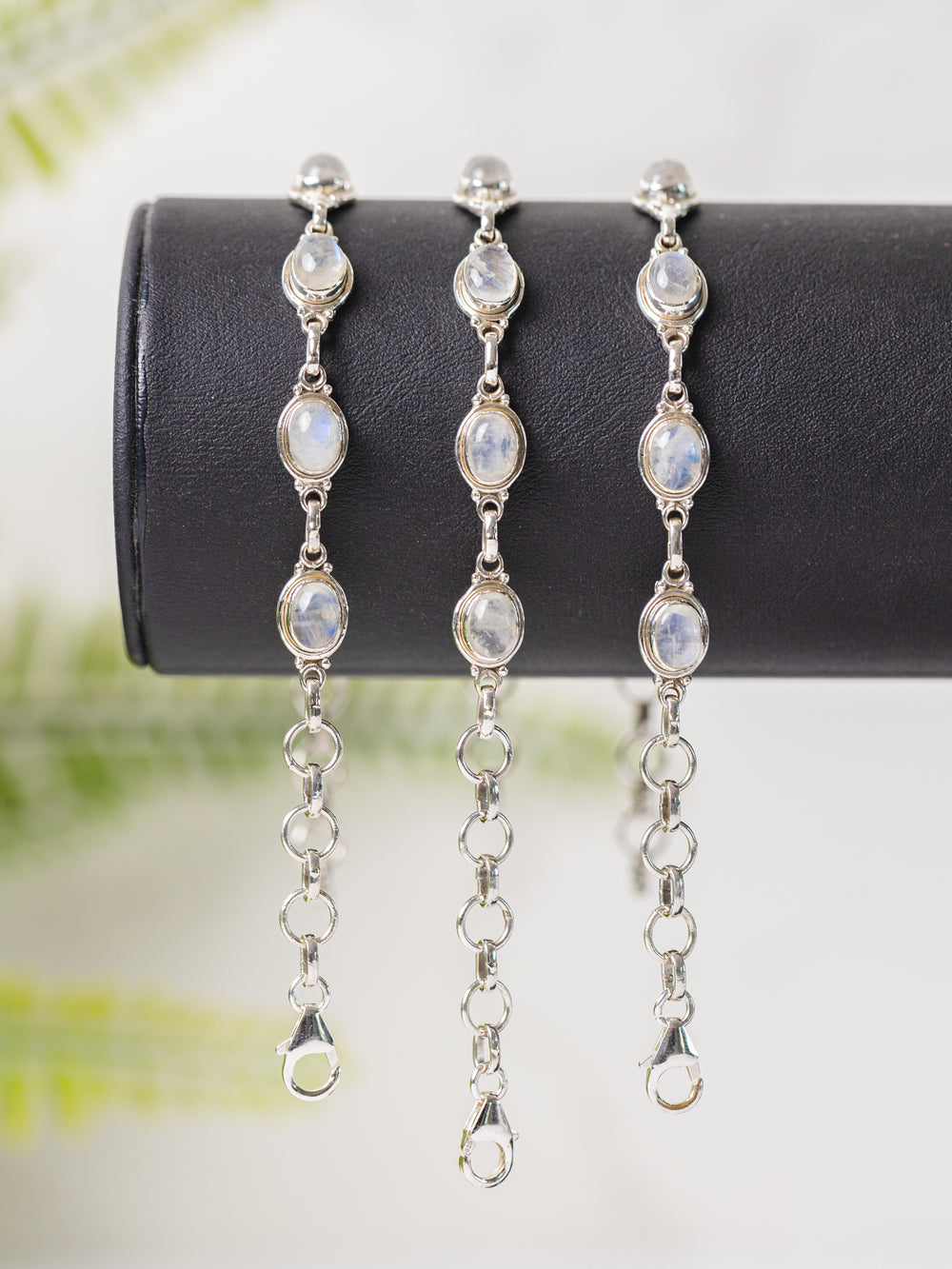 Deze elegante zilveren armband met maansteen straalt rust, zachtheid en vrouwelijke energie uit. De subtiele glans, ook wel moonlight effect genoemd, geeft de steen een betoverende, dromerige uitstraling. De 925 sterling zilveren zetting versterkt de natuurlijke schoonheid en tijdloze elegantie van dit sieraad.