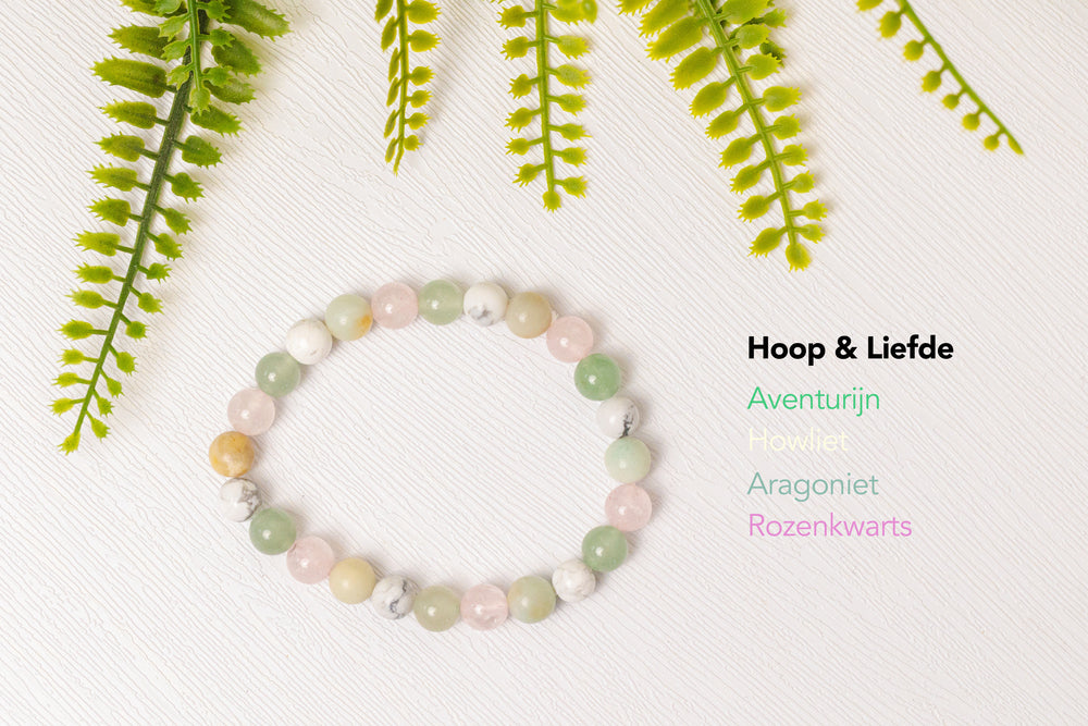 Op zoek naar een mooi cadeautje, een persoonlijk steuntje in de rug of gewoon een fijn accessoire met betekenis? Onze geluksarmbandjes zijn er in 22 verschillende soorten, elk met hun eigen energie en boodschap – van liefde en hoop tot geluk, bescherming, succes, slaap, vruchtbaarheid, kracht en meer.
