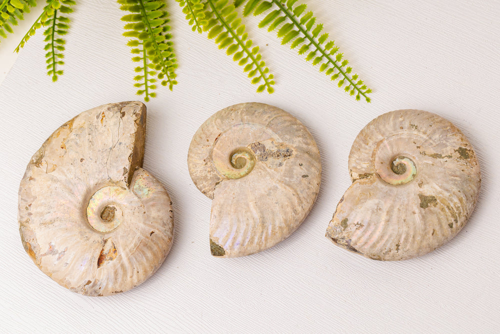 Geopaliseerde ammonieten zijn zeldzaam en bijzonder geliefd bij verzamelaars en liefhebbers van fossielen en mineralen. Ze staan symbool voor levenscycli, transformatie en kosmische wijsheid. Het natuurlijke spiraalpatroon en de glanzende opaalstructuur maken elk stuk uniek en magisch.