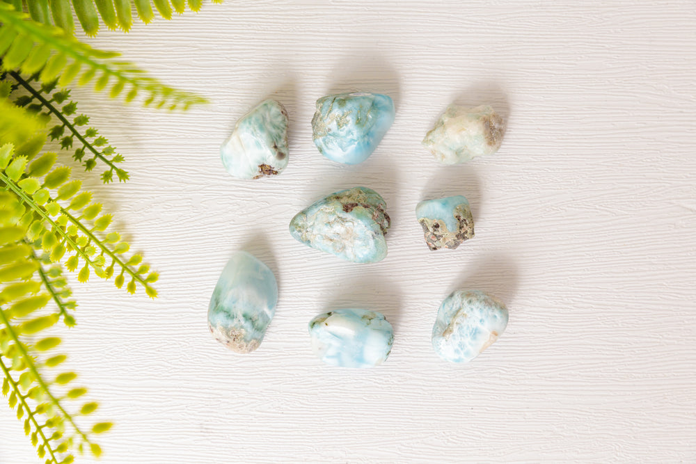 Onze Larimar trommelstenen stralen de serene energie van de oceaan uit. Met hun zachte blauw-witte tinten en marmerachtige patronen brengen ze direct een gevoel van rust, helderheid en frisse energie in je leven.