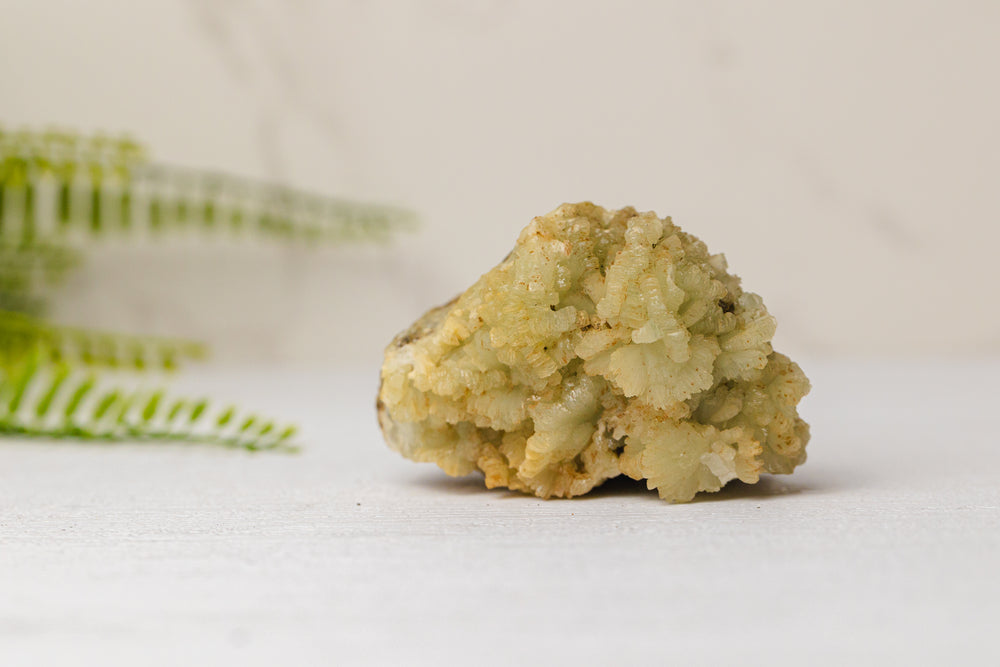 Dit unieke stuk Prehniet uit Marokko is een echte blikvanger door zijn bijzondere waaierformatie – een zeldzame en elegante groeivorm die de natuurlijke schoonheid van deze steen prachtig laat zien.