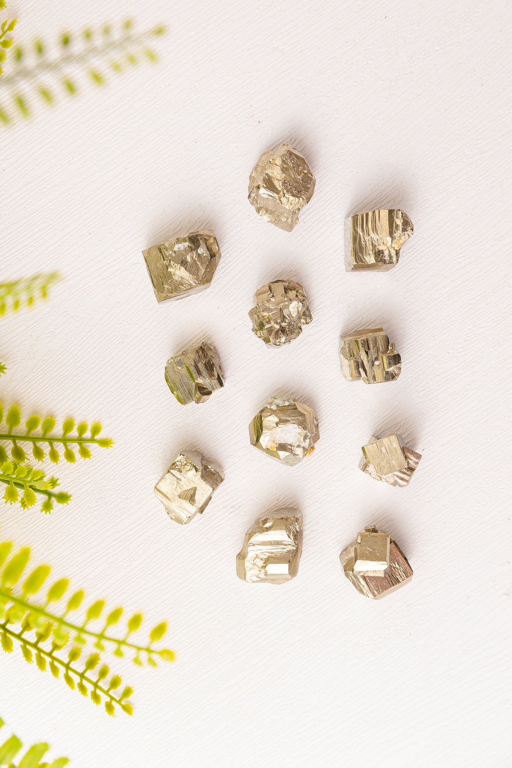Deze pyriet blokjes zijn natuurwonderen: de perfecte kubusvorm is volledig door de aarde zelf gevormd, zonder menselijke bewerking. De goudachtige glans geeft het mineraal zijn bijnaam “fool’s gold”, maar de schoonheid en energie van pyriet zijn allesbehalve bedrieglijk.