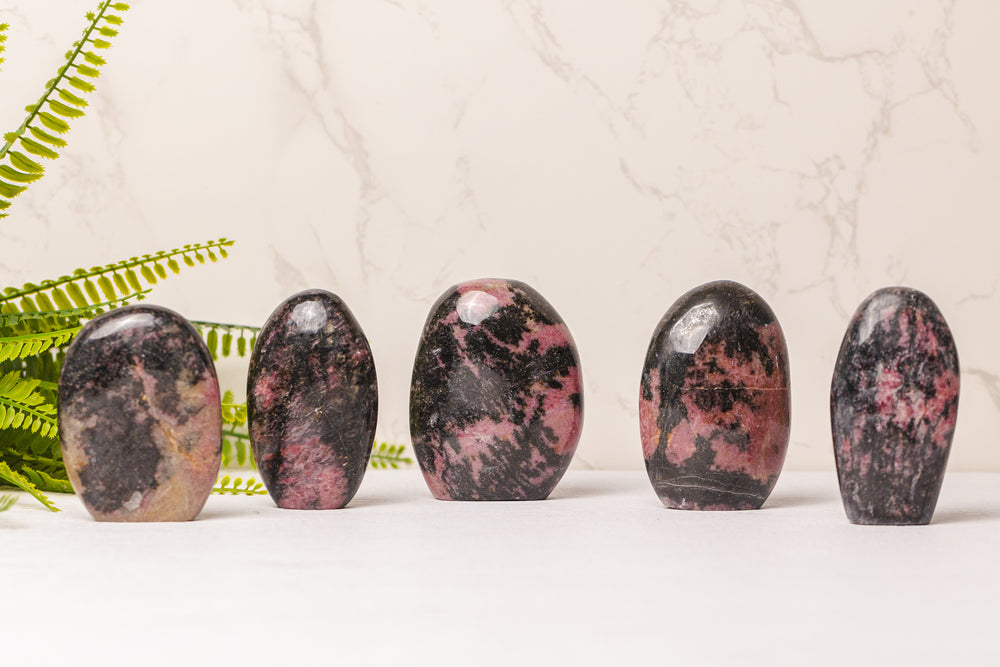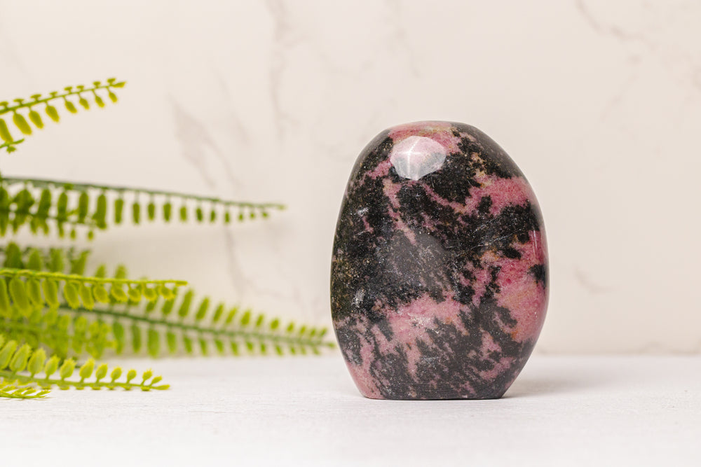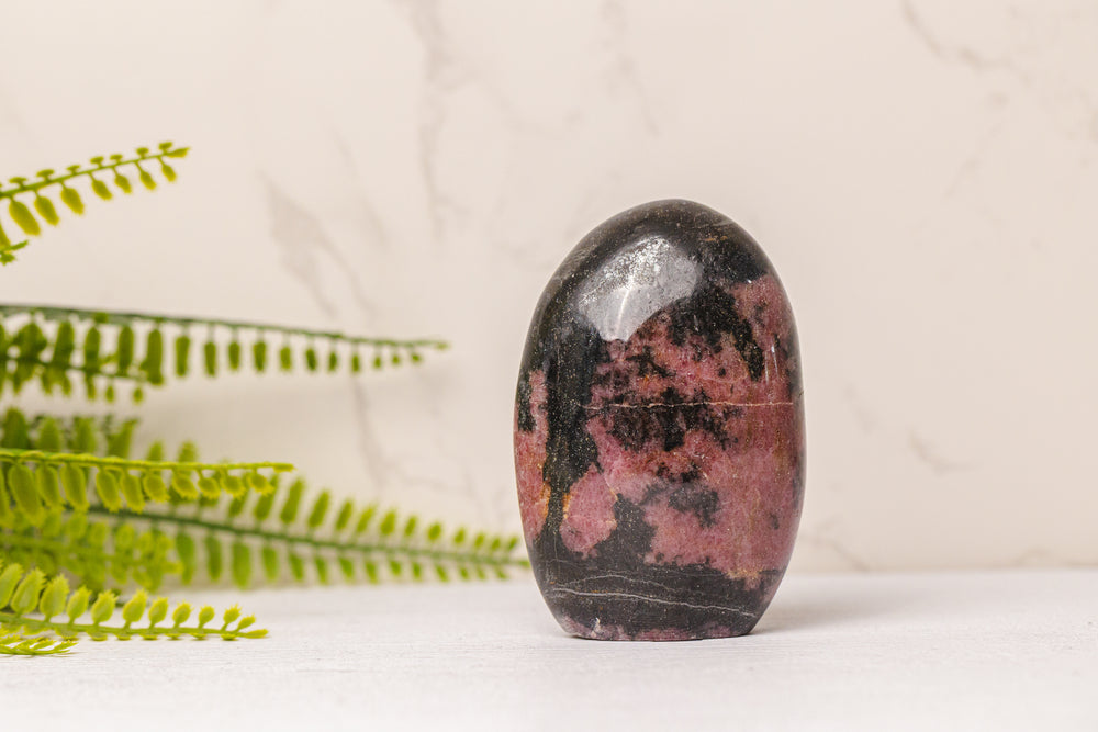 Ontdek de krachtige balans tussen liefde en innerlijke kracht met onze Rhodoniet sculpturen – prachtige handgeslepen stenen in diepe roze tinten met karakteristieke zwarte aders. Deze opvallende sculpturen stralen een harmonieuze energie uit en zijn perfect als ondersteuning bij emotionele groei en zelfheling.