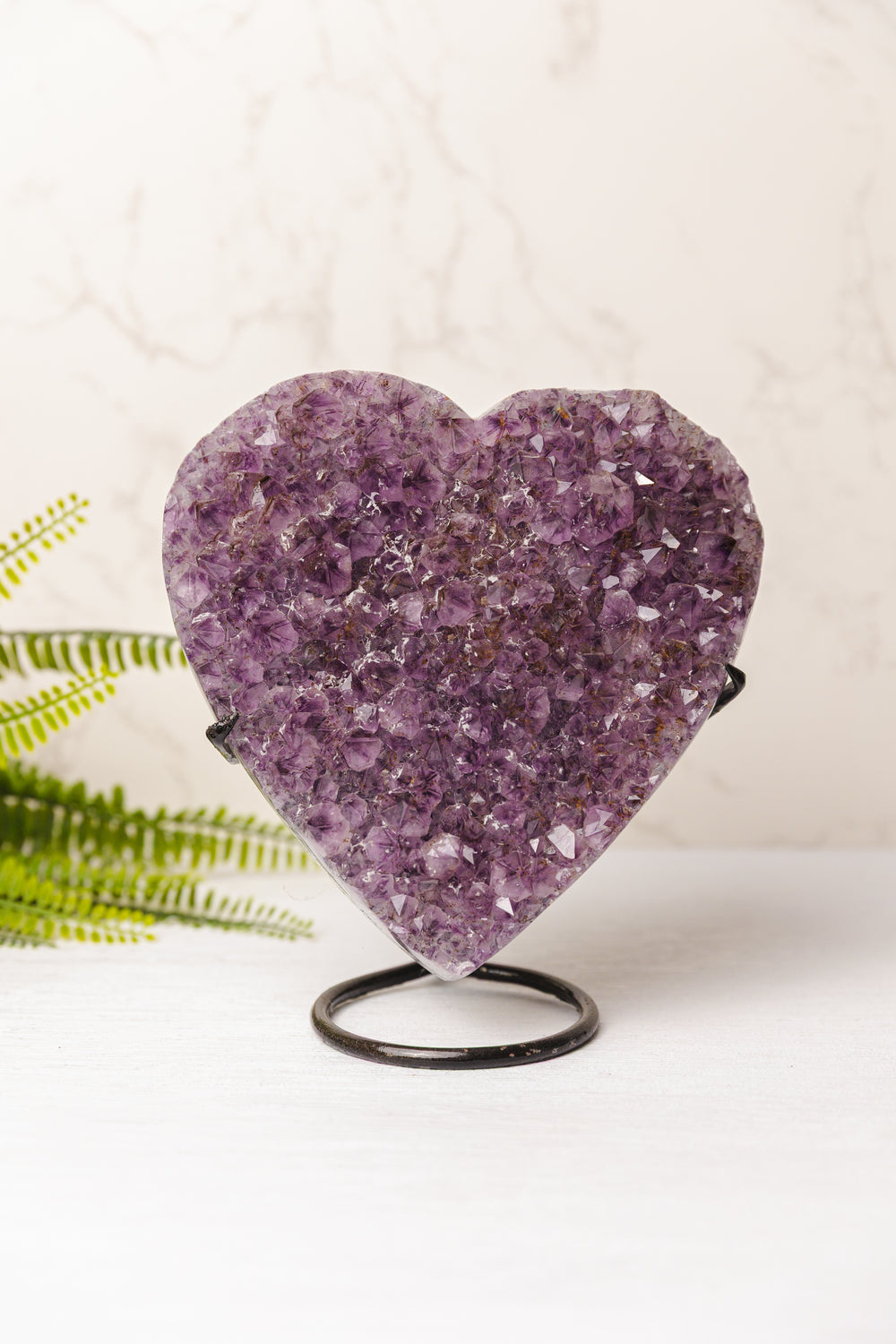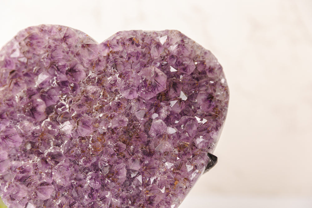 Dit prachtige ruw geslepen amethist hart is een echte blikvanger in huis of op kantoor. De diepe paarse kristallen stralen rust en harmonie uit, terwijl de hartvorm symbool staat voor liefde, verbondenheid en compassie.