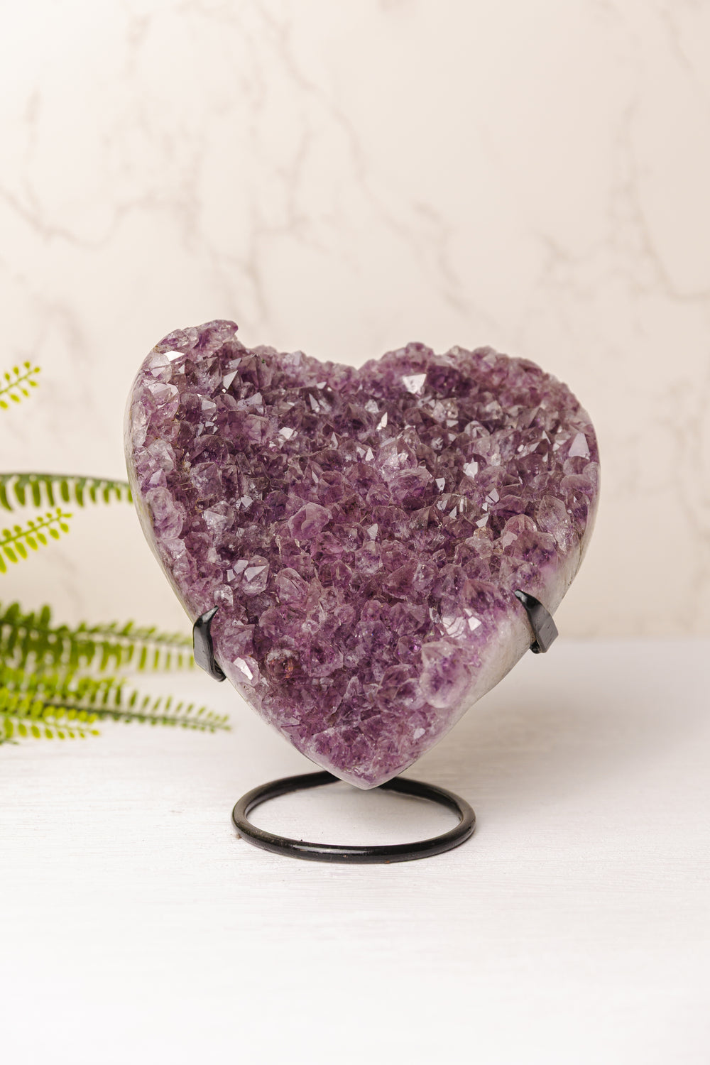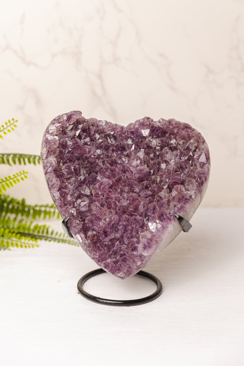 Dit prachtige ruw geslepen amethist hart is een echte blikvanger in huis of op kantoor. De diepe paarse kristallen stralen rust en harmonie uit, terwijl de hartvorm symbool staat voor liefde, verbondenheid en compassie.