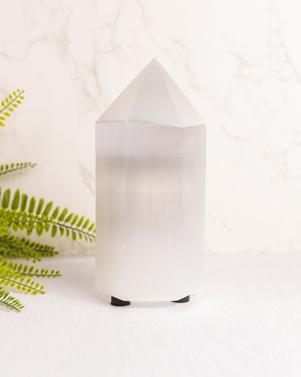 Breng rust, helderheid en een zachte gloed in je ruimte met deze seleniet lamp in puntvorm. Seleniet staat bekend om zijn sterk zuiverende en hoge energetische werking en helpt bij het creëren van een kalme, harmonieuze sfeer. De puntvorm versterkt de gerichte energie en maakt deze lamp ideaal voor meditatie, ontspanning of als rustgevend lichtpunt in huis.