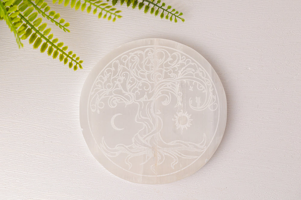 Breng balans en harmonie in je ruimte met deze prachtige Seleniet onderzetter met levensboom. De combinatie van de zuiverende kracht van Seleniet en het symbolische ontwerp van de levensboom maakt dit een uniek en spiritueel item. De levensboom staat voor groei, kracht en verbondenheid met het universum, terwijl Seleniet bekendstaat om zijn energetische reiniging en bescherming.