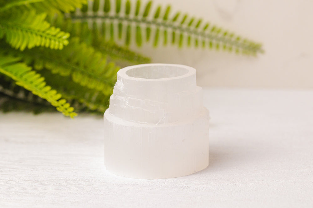 Seleniet staat bekend om zijn krachtige zuiverende en beschermende eigenschappen. Het helpt bij het verwijderen van negatieve energie, brengt balans in de ruimte en verhoogt de vibratie. Wanneer een kaarsje in de houder brandt, wordt de natuurlijke schoonheid van Seleniet extra geaccentueerd, waardoor een betoverend lichteffect ontstaat.