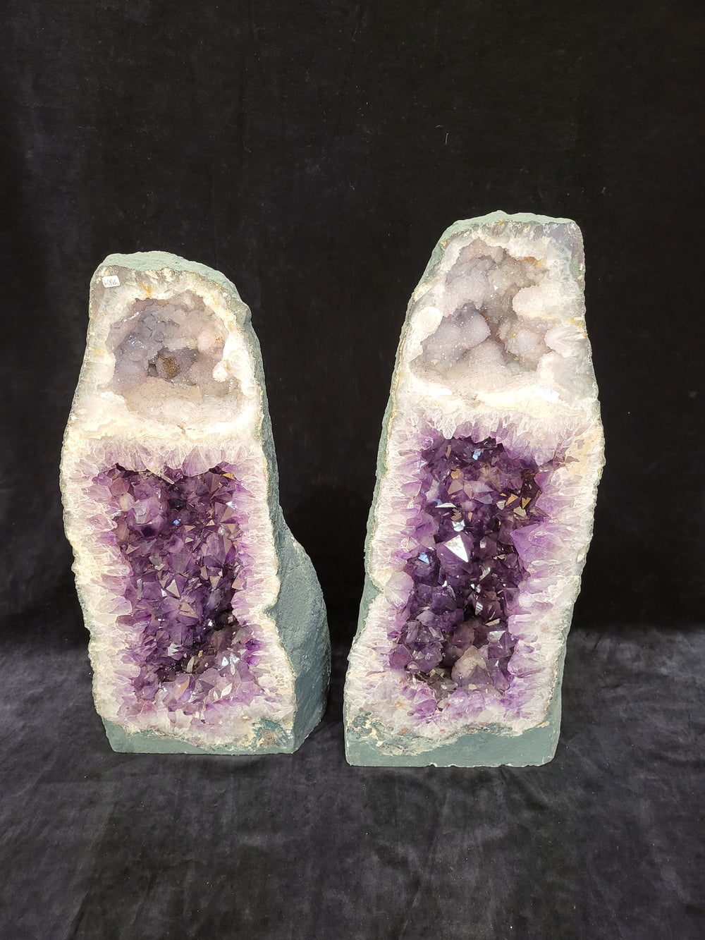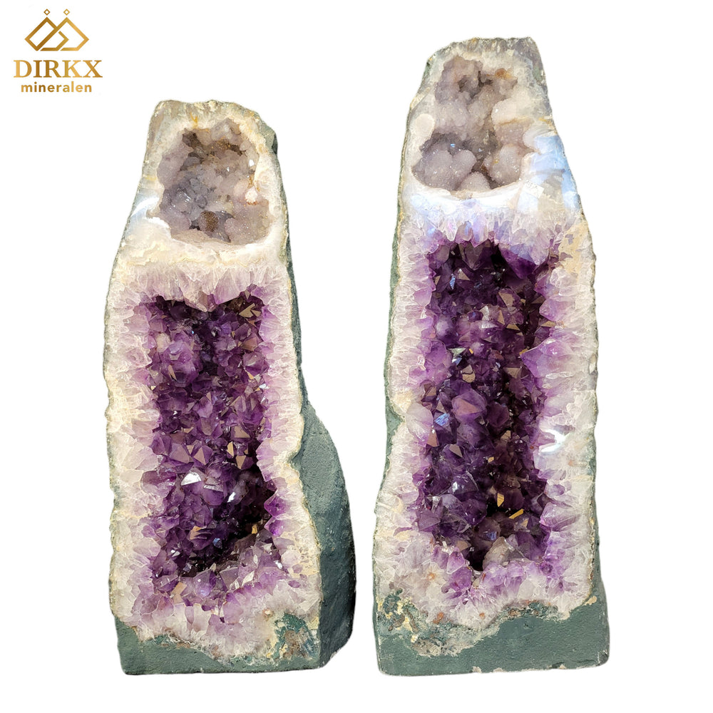 Uniek Amethist Geode Paar met 2 Verschillende Kristalformatie kamers