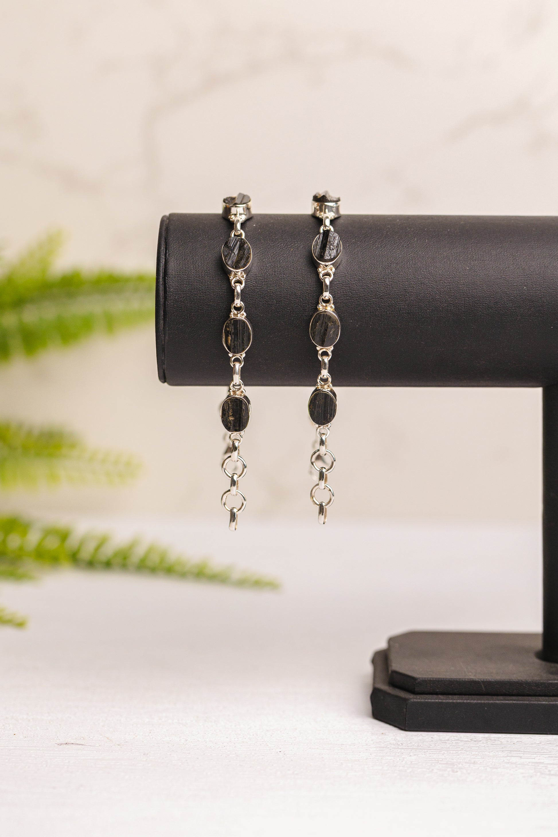 Draag de krachtige energie van zwarte toermalijn om je pols. Deze zilveren armband is afgewerkt met een ruwe zwarte toermalijn steen, waardoor het sieraad een pure en robuuste uitstraling heeft. De diepe zwarte kleur staat symbool voor bescherming, stabiliteit en kracht.